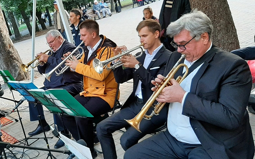 Прохладные осенние выходные не стали исключением! Для любителей танцев и хорошей музыки из числа активных участников проекта "Курское долголетие" в парке Героев Гражданской войны выступил эстрадный оркестр под руководством Василия Кравченко.
