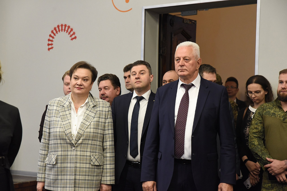 Врио заместителя губернатора Курской области Владимиром Базаровым совместно с врио министра социального обеспечения, материнства и детства Курской области Татьяной Сукноваловой приняли участие в торжественной церемонии открытия волонтерского Центра социальных инициатив «Станция добра».