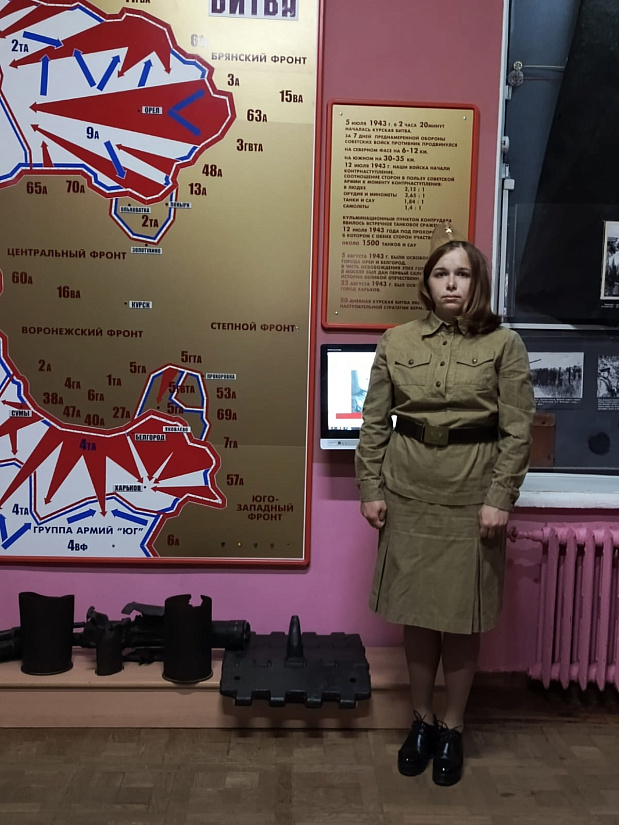 Под тихие, трепетные мелодии военных лет перед посетителями музея экскурсии оживали страшные и героические страницы истории Курской земли. Повествование велось от имени девочки-выпускницы 1941 года, полной планов на будущее, девушки-зенитчицы, впервые попавшей под обстрел, скорбящей матери, у которой на глазах расстреляли сыновей.