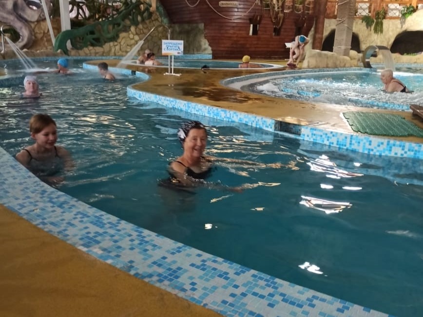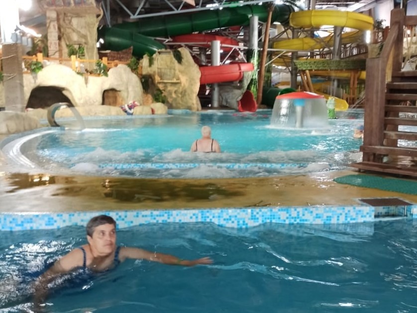 В этот раз граждане старшего поколения с удовольствием плавали в бассейне, смело покоряли водные горки и расслаблялись в сауне и турецком хамаме. А посещение соляной пещеры добавило оздоровительных ноток в этот насыщенный день.
