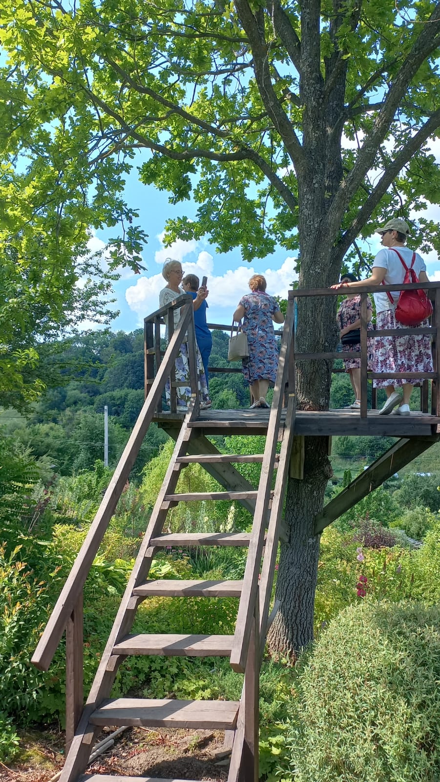 Чарующие виды на сад со смотровой площадки, на искусственные пруды вдоль уютных лавочек и уголки для отдыха, ароматный травяной чай, ручной ослик, говорящий попугайчик, гостеприимство семьи Сидоровых, создавших это чудо своими руками никого не оставили равнодушными, подарили восторг и радость!