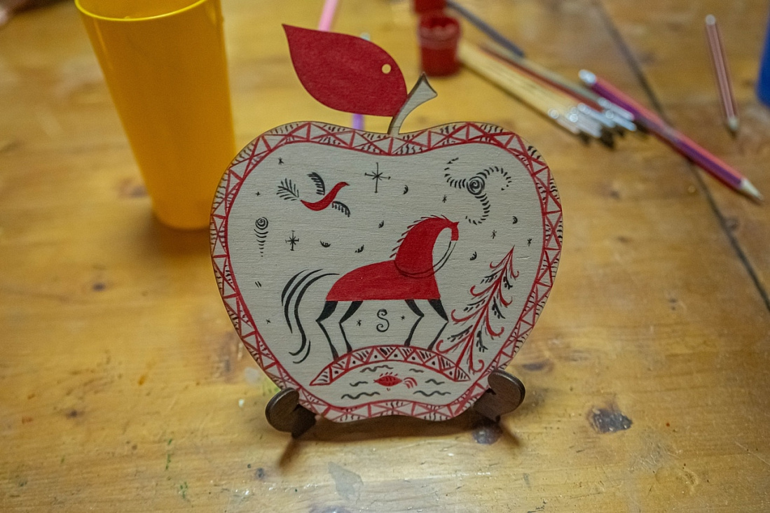 Мезенская роспись — это уникальный стиль, который восходит к народным традициям и славится яркими цветами и оригинальными узорами. Участники мастер-класса не только узнали об истории этого искусства, но и сами создали свои маленькие шедевры, наполнив пространство творческой атмосферой и радостью.