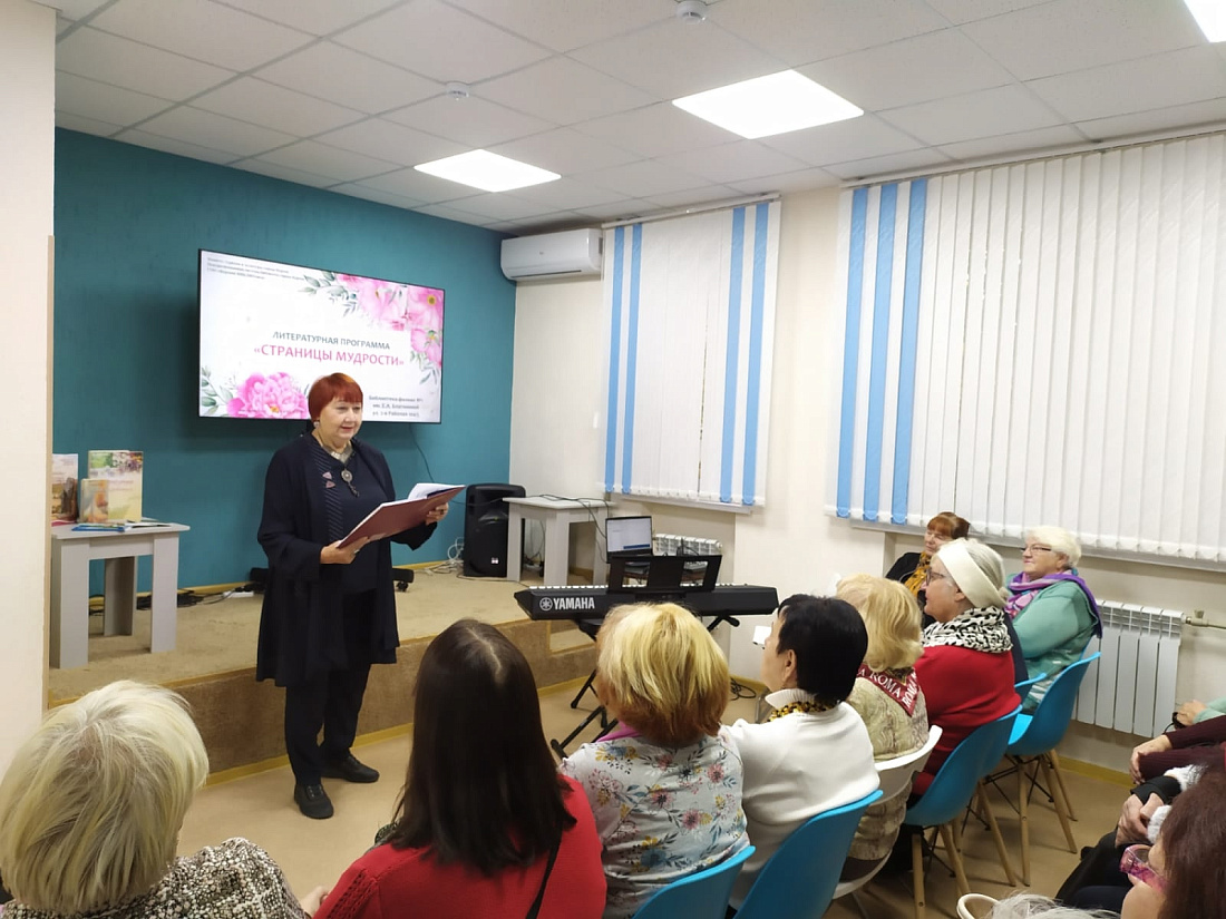 Участники проекта «Курское долголетие» г. Курска посетили литературную программу «Страницы мудрости» в детской модельной библиотеке-филиале №1 им. Е.А. Благининой.