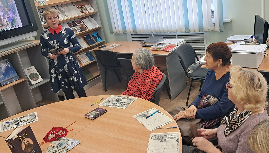 Участники проекта «Курское долголетие побывали на заседании Клуба любителей чтения в библиотеке им. Асеева. Литературная гостиная «Поэт красоты и радости жизни», была посвящена известному русскому поэту, нашему земляку Афанасию Фету.