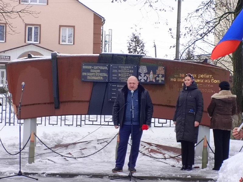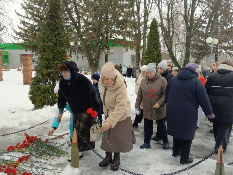 В знак уважения к подвигам солдат и офицеров, отдавших свои жизни ради безопасности страны, щигровцы почтили память земляков минутой молчания и возложили цветы к памятному знаку.