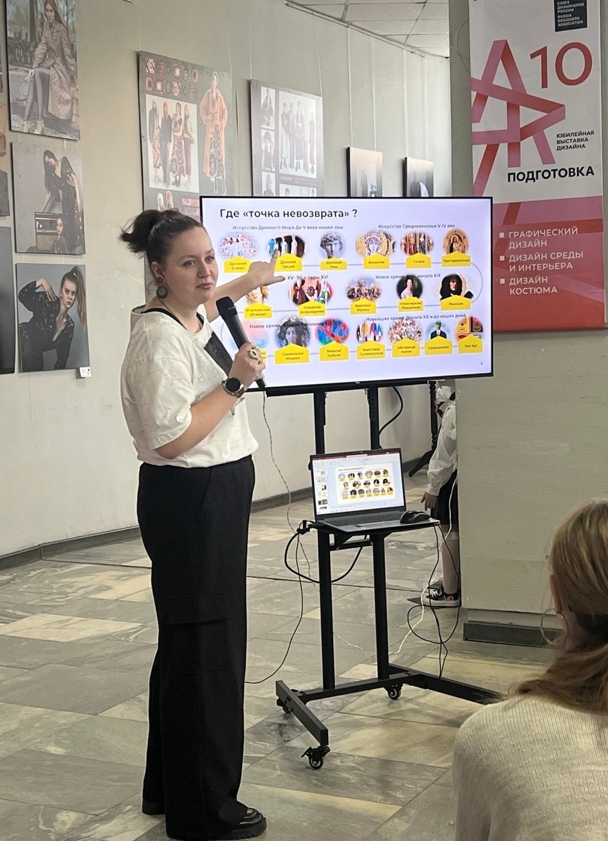 Участники проекта «Курское долголетие» г. Курска побывали на лекции «Как понимать современное искусство?», которая прошла в выставочном зале им. К. Малевича. Гостем мероприятия стала Дарья Сазонова — член Союза дизайнеров России, известный АРТ-блогер и студентка Международной Академии искусств и антиквариата «Агена – АРТ» при МГУ.