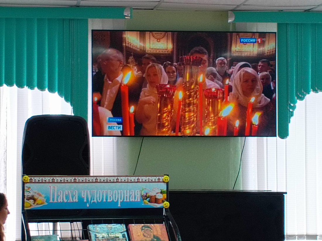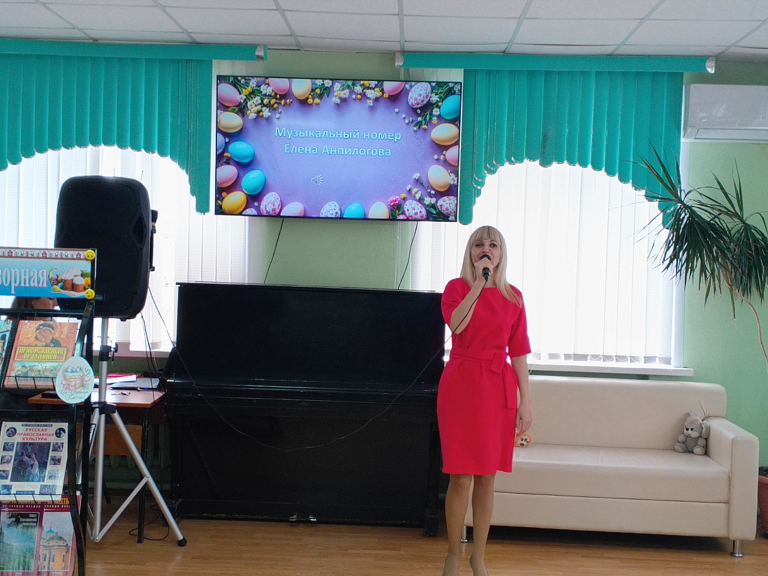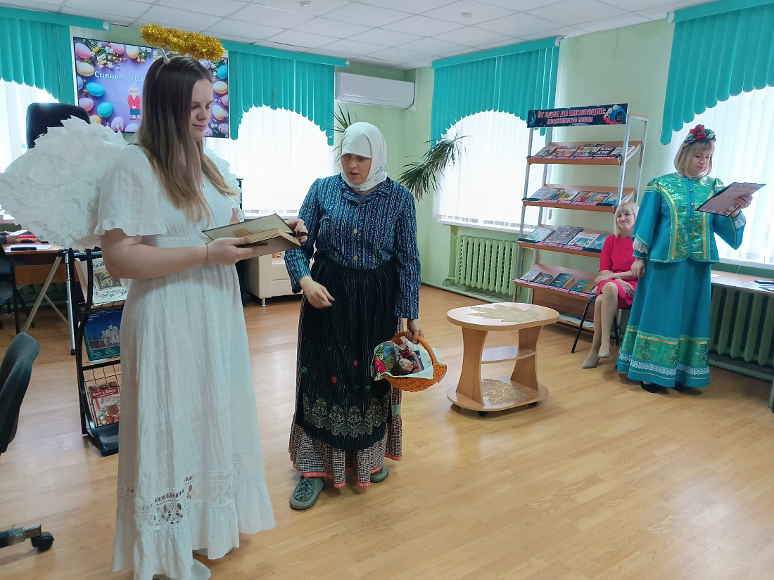Гостям рассказали об истории Пасхи, показали кадры богослужений из главных храмов страны. Своими выступлениями зрителей порадовали работники культуры, а также самодеятельные артисты со сценкой «Бабка Праска и ангел».