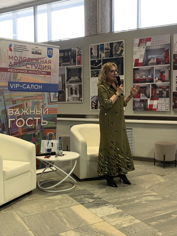 Участники проекта г. Курска побывали на творческой встрече с модельером и заслуженным художником РФ Верой Геппой в выставочном зале им. К. Малевича