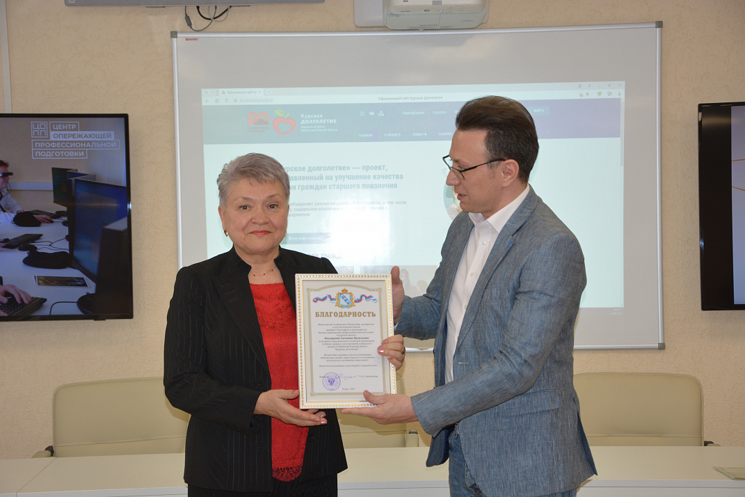 Участникам проекта "Курское долголетие" вручили удостоверения о получении дополнительной профессиональной подготовки.