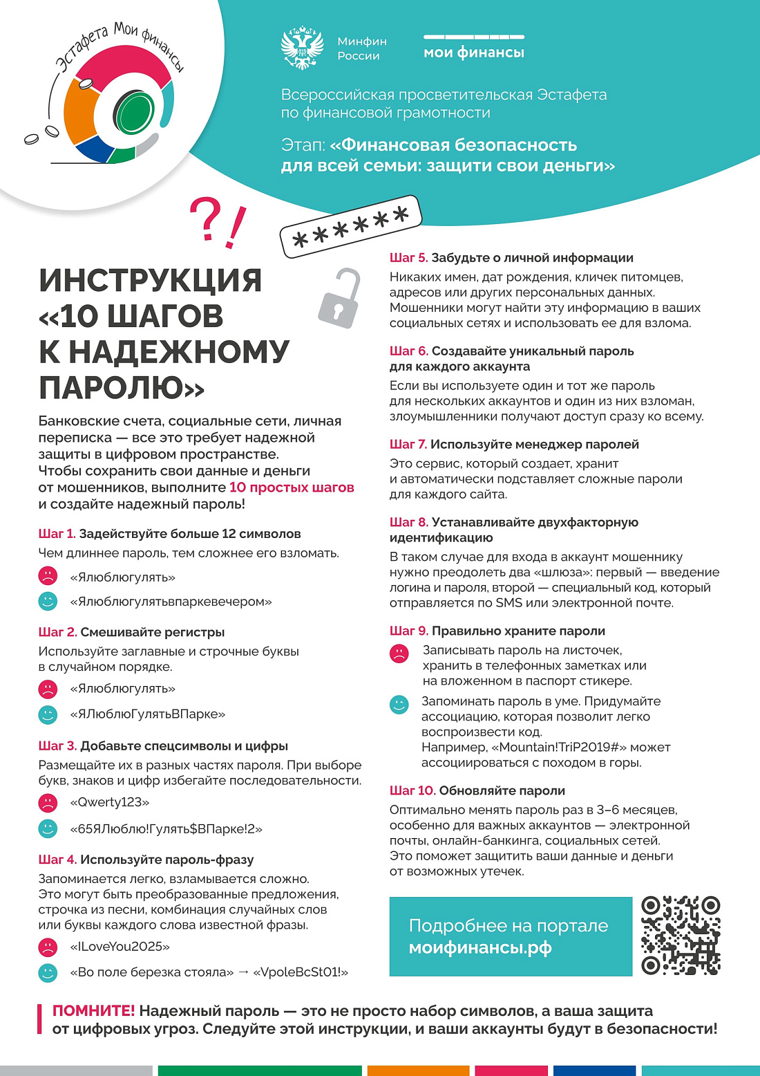 В карточках рассказываем, как придумать надежный пароль. И напоминаем: не забывайте его периодически менять