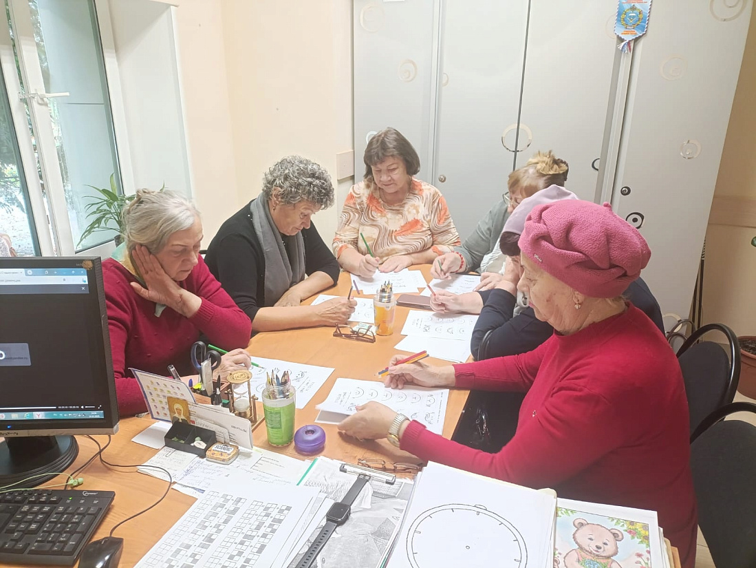 По традиции встреча началась с теплых приветствий, а затем граждане старшего возраста погрузились в работу. Их ждало психологическое тестирование («Выбери цветок» и «В чем ваше счастье»), задания на логику и, конечно, полюбившиеся всем творческие упражнения «Друдлы» и «На что это похоже?».