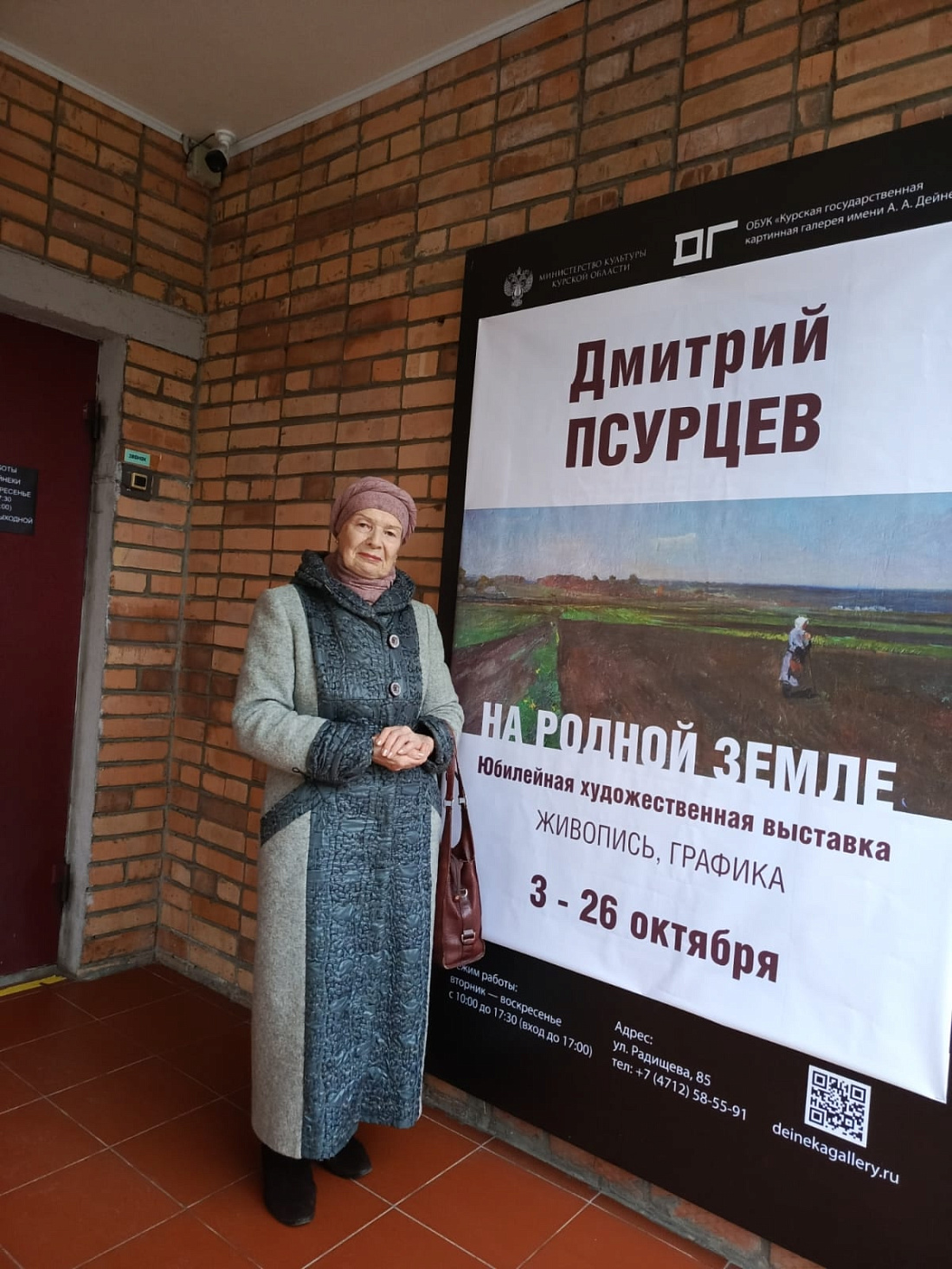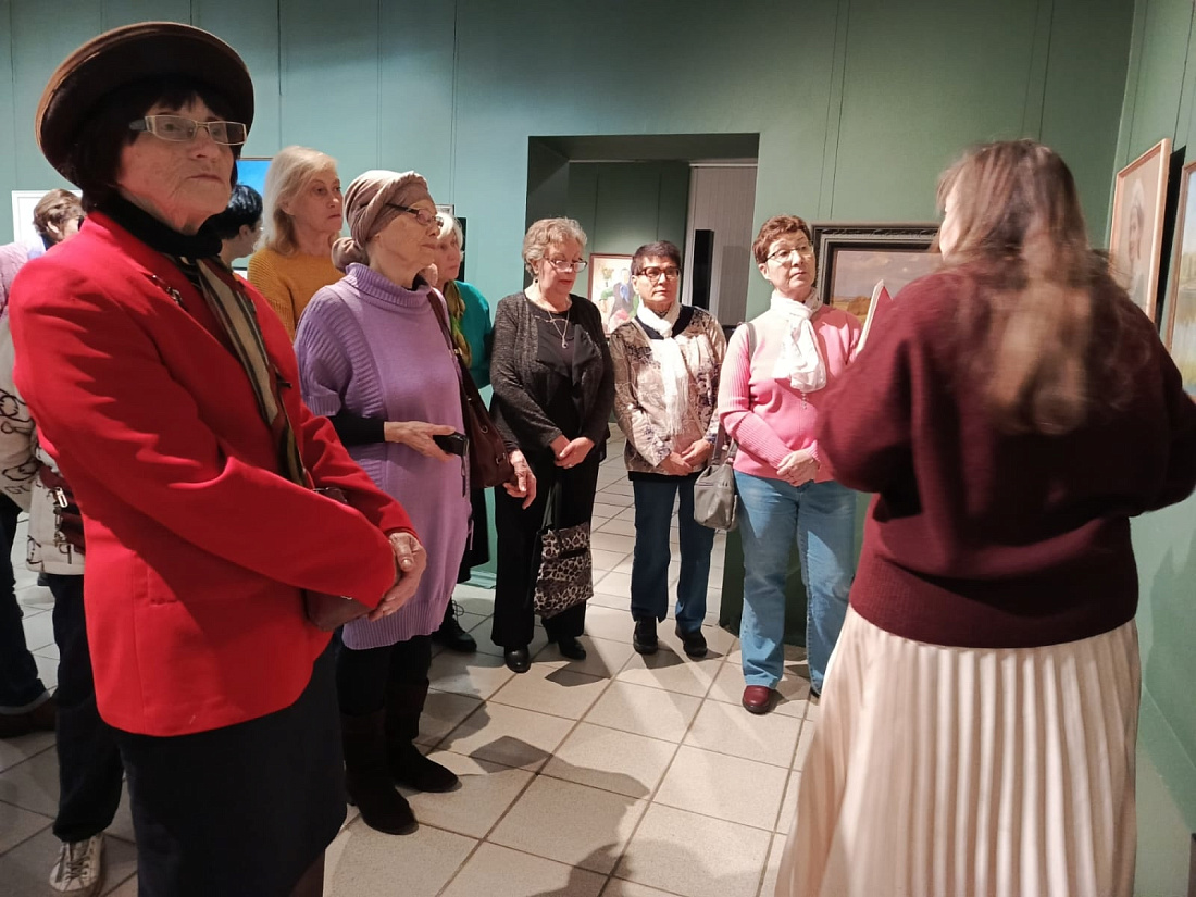 Участники социального проекта «Курское долголетие» г. Курска посетили сразу две новые выставки: «Дмитрий Псурцев. На родной земле» и «Союз-90» в Курской государственной картинной галерее имени А. Дейнеки.