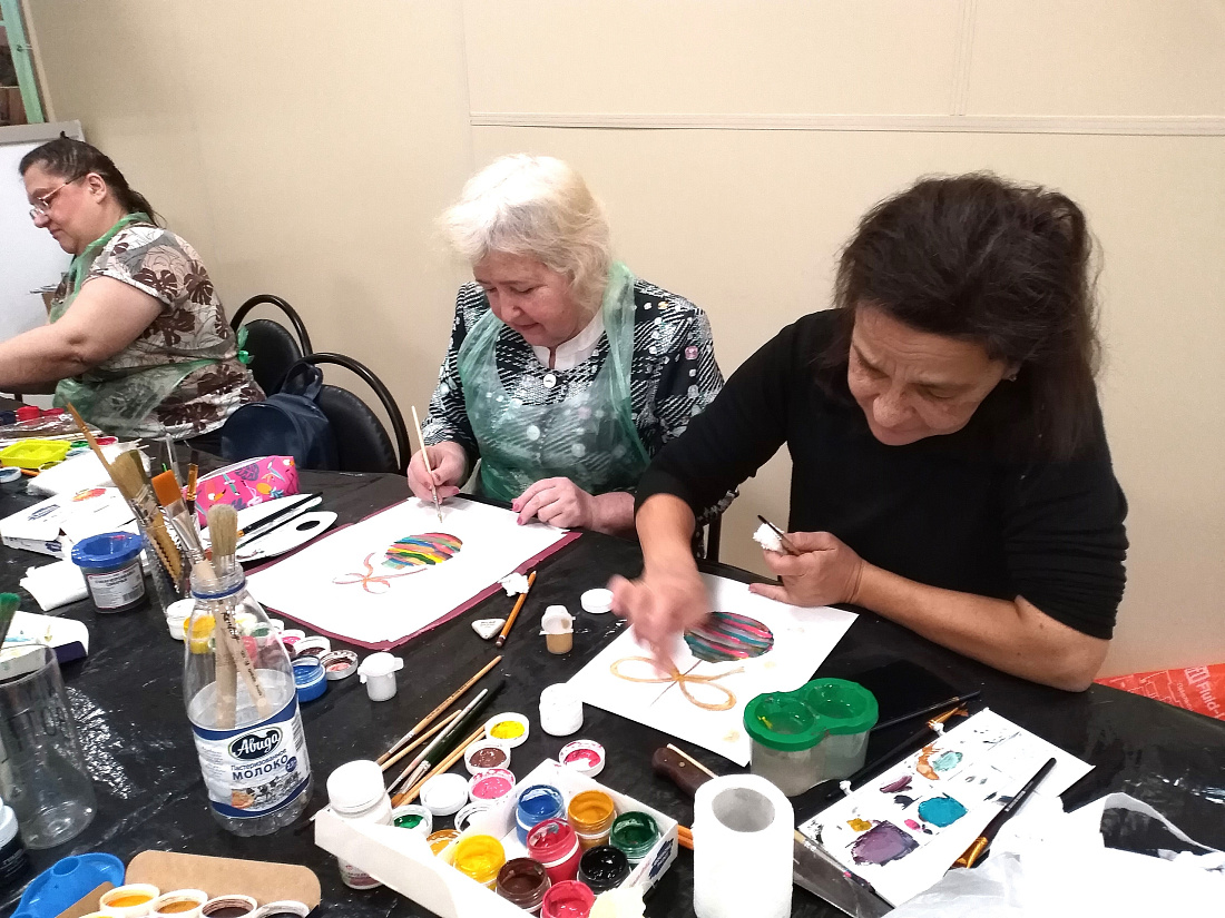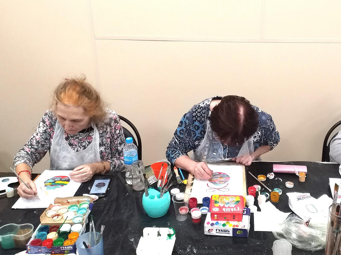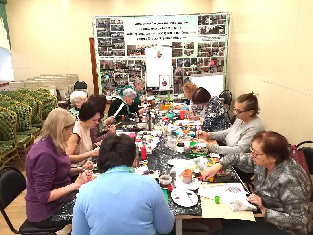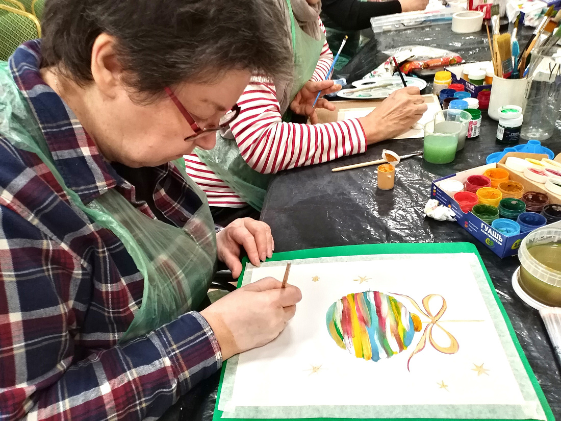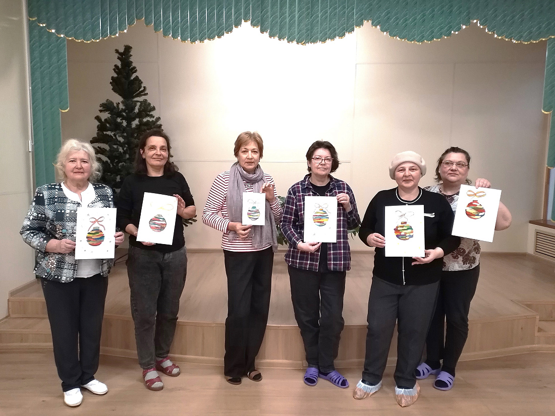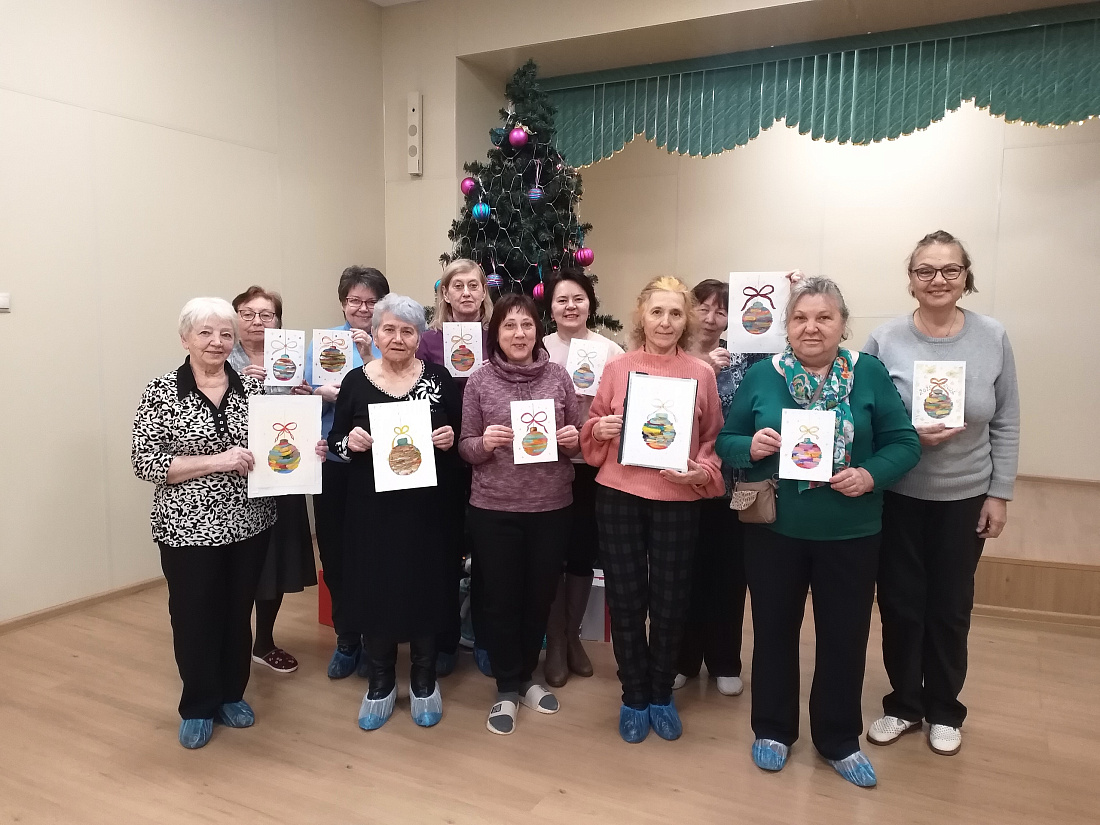 На творческом занятии по изобразительному искусству в центре «Участие» царила по-настоящему праздничная атмосфера. Участники проекта «Курское долголетие» г. Курска создавали новогодние открытки.
