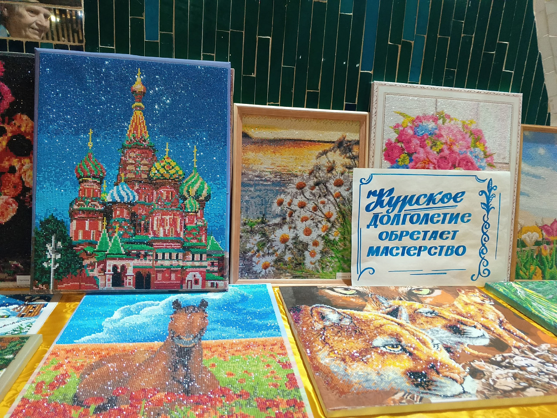 Присутствующие посетили также представленную в фойе выставку творческих работ участников проекта «Курское долголетие обретает мастерство».