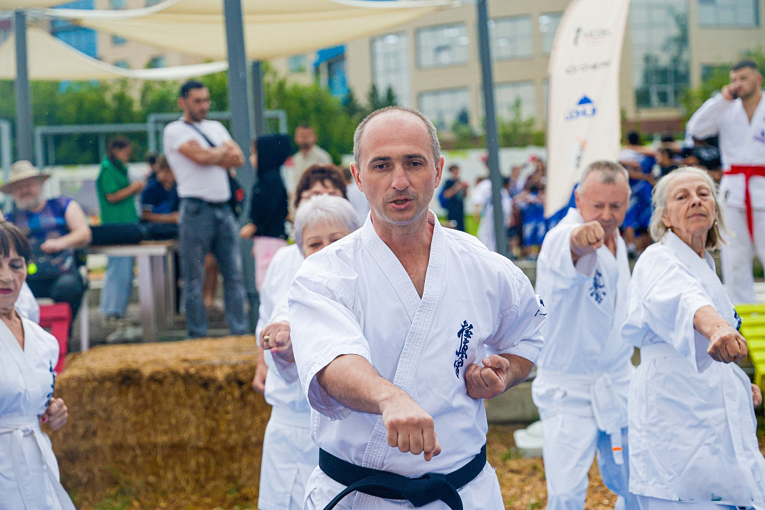 Несмотря на непогоду, взрослые каратисты показали, что физическая активность не имеет возрастных границ. Их выступление стало настоящим доказательством того, что дисциплина, регулярные тренировки и любовь к спорту способны сохранить бодрость, силу и радость жизни.