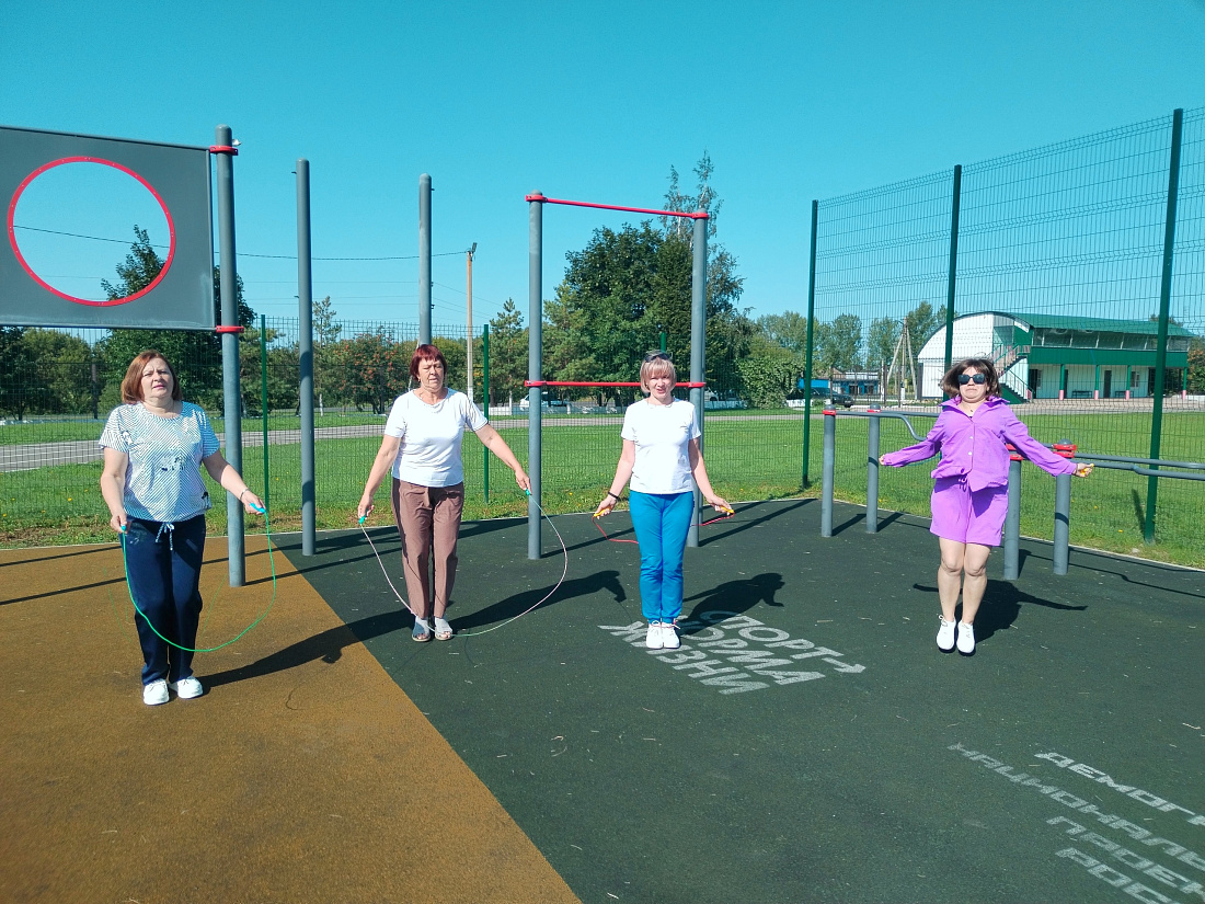 В преддверии праздника активисты проекта «Курское долголетие» Медвенского района приняли участие в спортивном мероприятии «Со спортом дружить, здоровым быть». Все присутствующие активно занимались бегом, прыгали через скакалку, играли в волейбол, а также занимались на тренажерах.