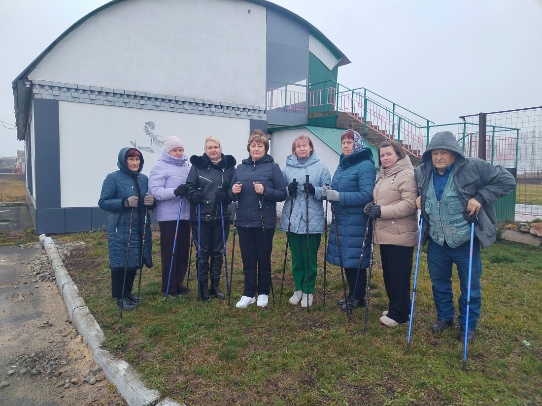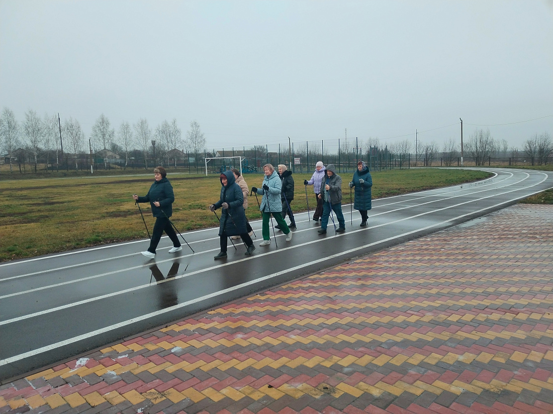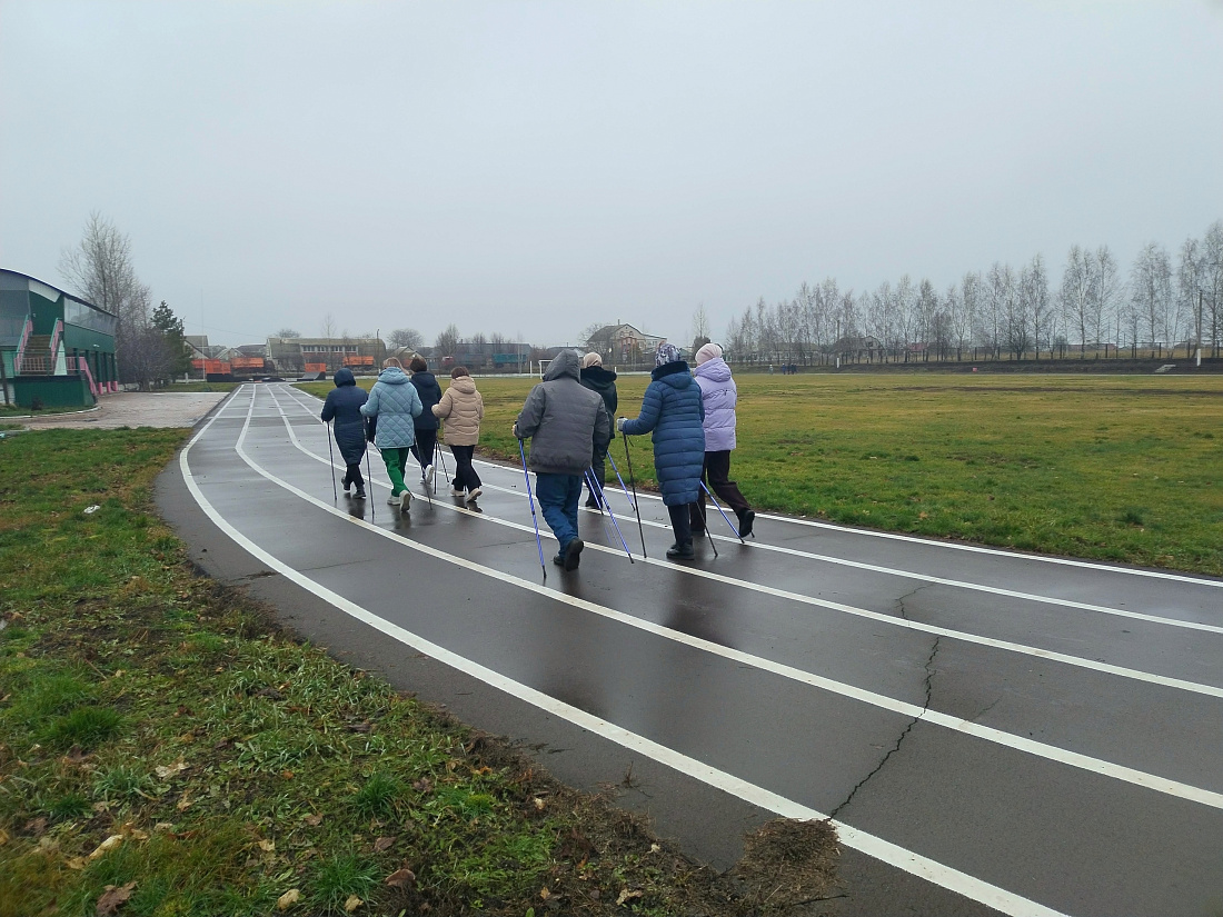 Очередное занятие по скандинавской ходьбе прошло на стадионе поселка Медвенка