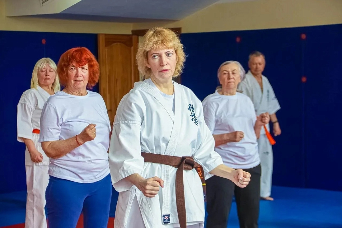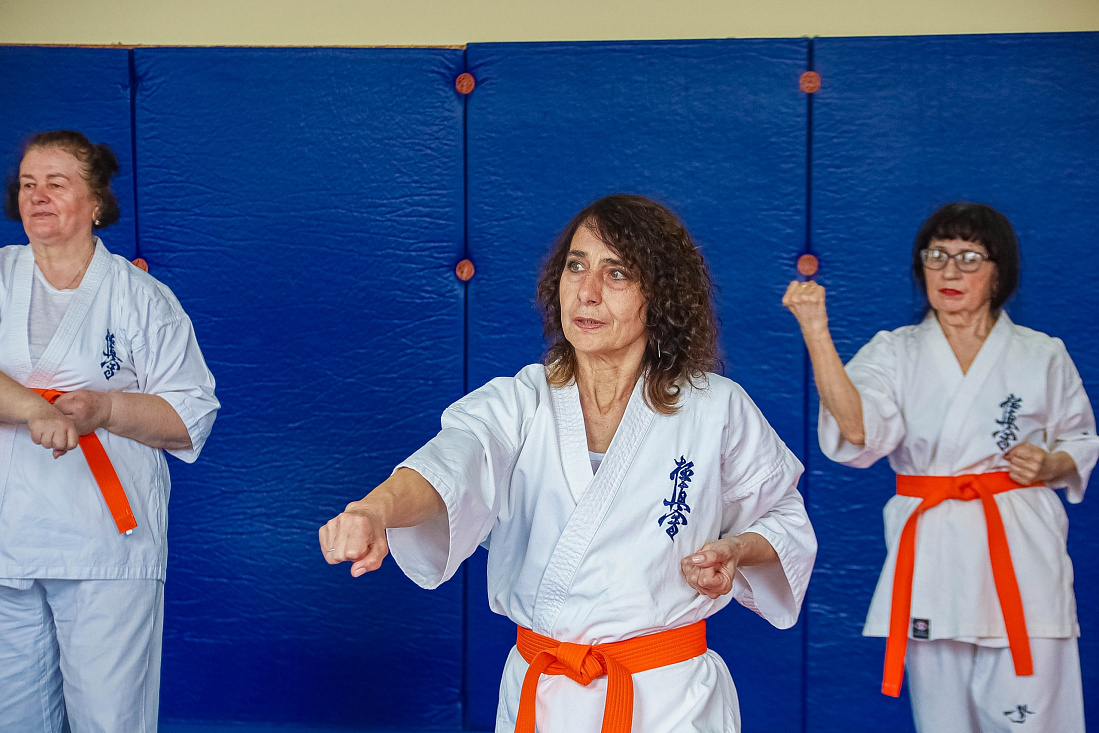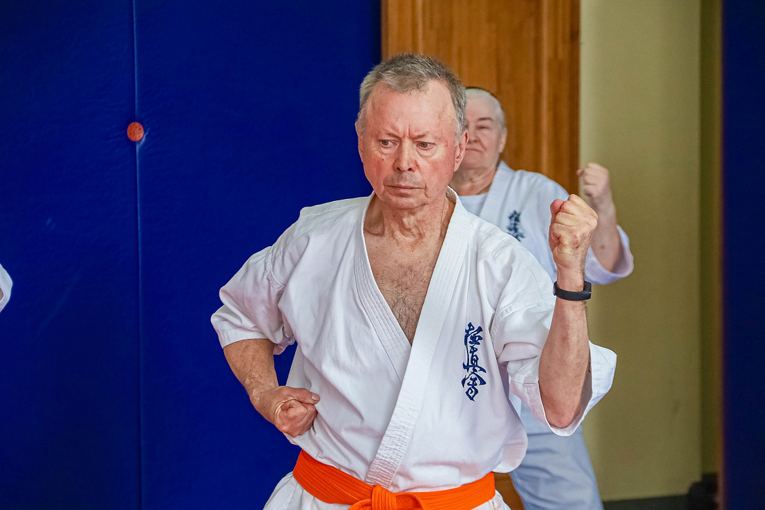 Участники проекта «Курское долголетие» г. Курска и г. Курчатова, занимающиеся каратэ, успешно сдали квалификационный экзамен по киокусинкай